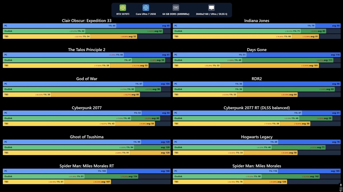 OCuLink показал большую скорость по сравнению с Thunderbolt 5 — тесты выявили прирост до 16 % FPS в играх