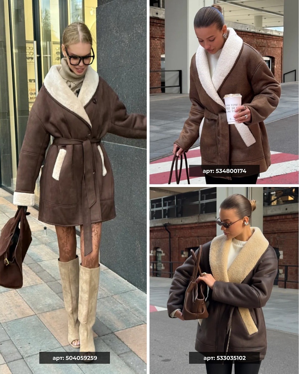 Зима не отменяет стиль — она требует продуманности. Мягкие фактуры, благородные коричневые тона, сливочный мех и правильные пропорции делают образ и тёплым, и выразительным. Ниже — девять ярких находок с подробным разбором. Идём строго по порядку с артикулами.