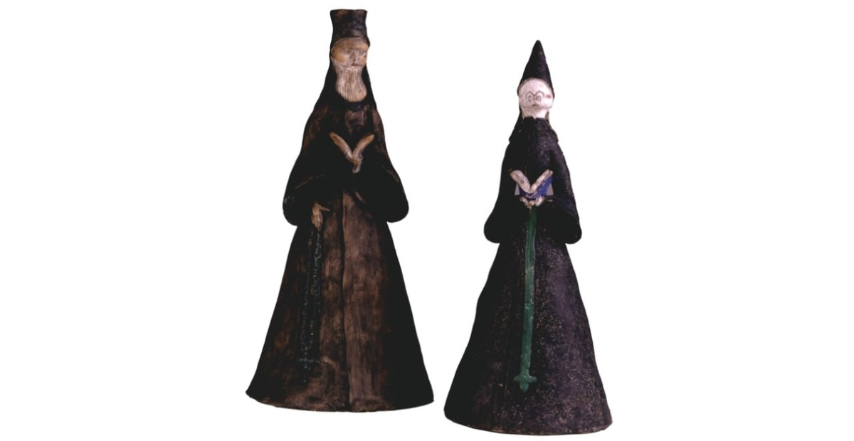 Народная глиняная игрушка из слободы Большие Гончары (Тула), 1880-е гг. ГРМ. Дамы, монахи, наездницы и даже "женщина с коровой".