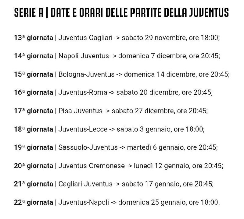 🚨📆 Даты и время матчей Ювентуса, с 13-го по 22-й тур
