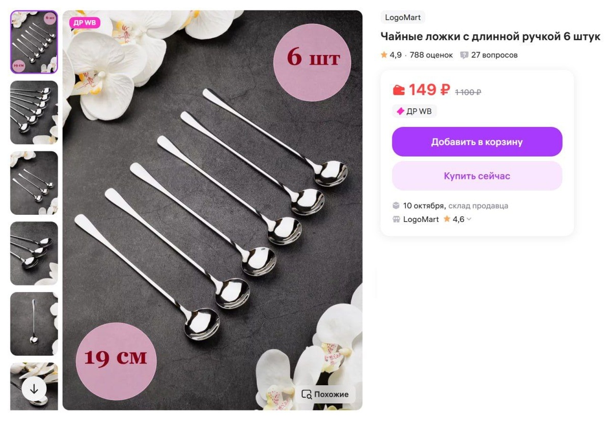 Чайные ложки с длинной ручкой 6 штук за 149₽