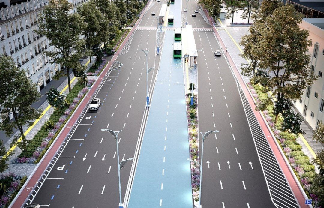 На улице Шота Руставели в Ташкенте запускается движение по центральной автобусной полосе