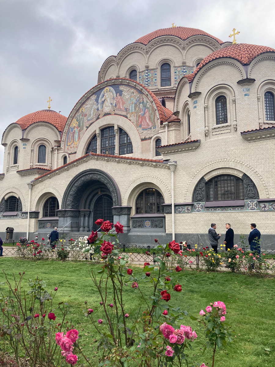 Впервые попала внутрь храма, обычно приезжала, когда службы шли в другом храме, а сегодня - в Казанском. Красивый - не то слово. Он прямо завораживающий. Как снаружи, так и внутри. Вокруг храма столько роз!!! Села на лавочку, любовалась и пила чай из термоса. Могила игумении Феофании (Готовцевой) - первой игуменьи монастыря. Расположена между Казанской церковью и аспидой Вознесенского собора. В советское время могилу осквернили и закатали в асфальт. Сейчас она вновь обретена. Могила архитектора Косякова, построившего Казанский храм. Этот архитектор строил и большой собор в Кронштадте. Архитектор Василий Косяков спроектировал Казанский храм в византийском стиле, строительство окончили в 1912 году. Росписи темперой внутри храма большей частью сохраннны (художник Фома Райлян). При советской власти в храме был склад, потом машиностроительный цех. В 1995 году церковь наконец отдали монастырю. Реставрировали ее с 2002 по 2004 год. Интересно, что при Хрущеве в 50-е годы Каз