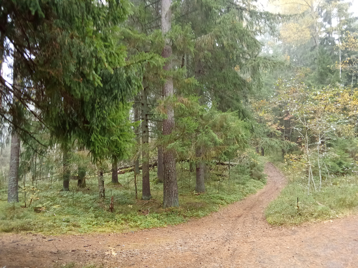 Оделись в поход не по погоде. Не подразумевали, что в лесу будет так холодно. Как только из электрички вышли и в лес зашли, сразу ощутили дискомфорт. Нужно было одеваться теплее при температуре +4 В лесу сыро, но все равно очень атмосферно. Пройдя три километра, не встретили ни одного грибника в выходной день. В лесу очень тихо... Муж проложил маршрут длиной около семи километров мимо турбаз и болот. Рюкзак с едой он всегда собирает основательно. Меня же кормить надо... Места под Орехово очень живописные и по этим дорожкам комфортно гулять даже в тапках Незаметно для себя все таки забрели в бурьян. Не-е! Такие места нам не нравятся Не успели покинуть это неприглядное место, как опять залезли в болотень. Переходить ручей по скользкому бревну не рискнули и взяли чуть выше. Мост через ручей обнаружили и довольные отправились дальше Грибов в лесу попадалось очень мало. Сразу стало понятно, что в этот раз мы грибов не наберем Попались вот такие грибы. Вроде опята. Брать не стала. Засомневал