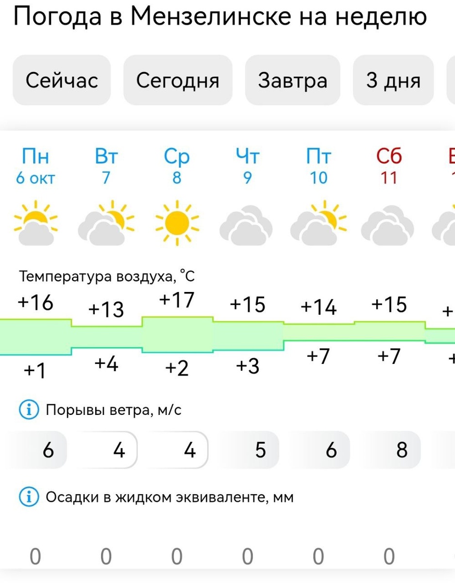 Как Вам погода в Мензелинске на неделю? Если радует, то ставь ❤️