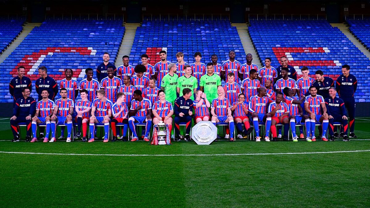 Командное фото "Кристал Пэлас" с двумя трофеями 📸