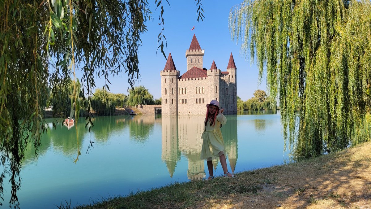 Утром мы были еще на плато Канжол, гуляли, наслаждались природой... а сейчас уже мчим в место, которое выбрала Ника (увидев его в ютубе). Она верит в сказку, принцев и принцесс. Ей хотелось увидеть замок. Для прогулки рядом с ним она с собой везла платье и шляпку. Все продумано))