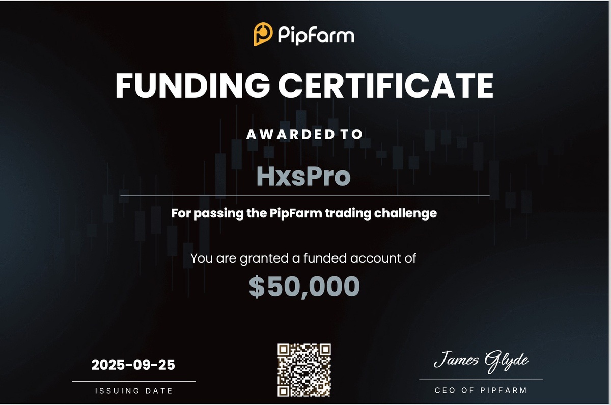 Совсем забыл, недавно получил Funded счет 50К от ✨ PipFarm