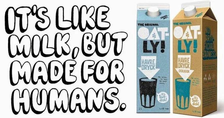 Вы слышали о компании Oatly? Да-да, именно она смогла заработать миллиарды долларов на обыкновенном овсяном молоке! Рассказываю, как шведская компания создала всемирный феномен: Представьте себе магазин: слева стоят стандартные упаковки молока, справа — загадочная чёрная коробка с надписью от руки: «Это как молоко, но для людей». Сразу возникает любопытство и улыбка. Именно так поступила Oatly — она превратила овсяное молоко в нечто большее, чем просто напиток. 💡 В чём секрет успеха Oatly? Компания осознала, что потребитель приобретает не просто продукт, а идею, смысл и ценности. Вместо классических слоганов вроде «натурально», «без ГМО», «полезно» Oatly заговорила простым и человечным голосом. Немного иронии, капелька абсурда — и готово! В итоге продукт приобрёл статус культового бренда. 🎯 Ключевой принцип Oatly: Продукт должен вызывать эмоциональный отклик, формировать прочные ассоциации и приносить удовлетворение. Основная аудитория Oatly — это не только приверженцы здорового