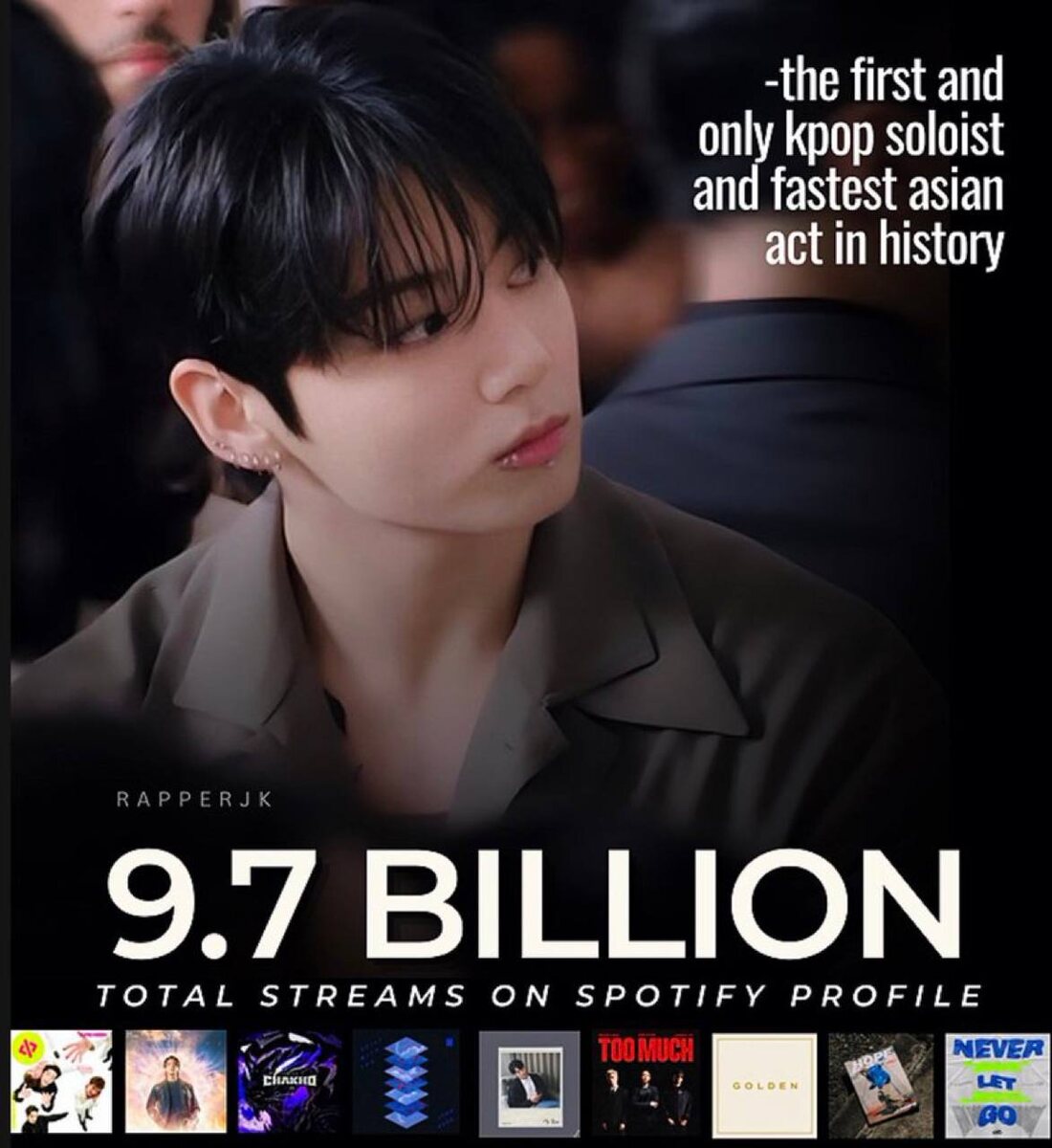 π Π§ΠΎΠ½Π³ΡΠΊ ΡΡΠ°Π» ΠΏΠ΅ΡΠ²ΡΠΌ ΠΊ-ΠΏΠΎΠΏ ΡΠΎΠ»ΠΈΡΡΠΎΠΌ, ΠΏΡΠ΅ΠΎΠ΄ΠΎΠ»Π΅Π²ΡΠΈΠΌ ΠΎΡΠΌΠ΅ΡΠΊΡ Π² 9,7 ΠΌΠΈΠ»Π»ΠΈΠ°ΡΠ΄ΠΎΠ² ΠΏΡΠΎΡΠ»ΡΡΠΈΠ²Π°Π½ΠΈΠΉ Π² ΡΠ²ΠΎΡΠΌ ΠΏΡΠΎΡΠΈΠ»Π΅ Spotify! ΠΠ½ ΡΠ°ΠΊΠΆΠ΅ ΡΡΠ°Π» ΡΠ°ΠΌΡΠΌ Π±ΡΡΡΡΡΠΌ Π°Π·ΠΈΠ°ΡΡΠΊΠΈΠΌ Π°ΡΡΠΈΡΡΠΎΠΌ, Π΄ΠΎΡΡΠΈΠ³ΡΠΈΠΌ ΡΡΠΎΠ³ΠΎ ΡΡΠ±Π΅ΠΆΠ°. cr._rapperjk_ #JK @kumihobts