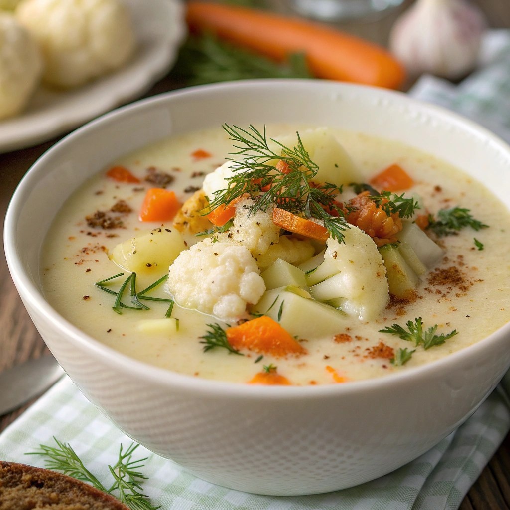 🍲 Кремовый суп-пюре из цветной капусты 🥦 Ингредиенты: 🧈 Лук - 1 шт 🥕 Морковь - 1 шт 🥔 Картофель - 2 шт 🥦 Цветная капуста - 500 г 🥛 Сливки 20% - 100 мл 🧂 Специи по вкусу 🌿 Зелень (укроп/петрушка) 1️⃣ Нарежь овощи и картофель, пассируй лук с морковью на масле. 2️⃣ Добавь цветную капусту и картофель, залей водой, вари до мягкости. 3️⃣ Суп пробей блендером до гладкости. 4️⃣ Влей сливки, добавь специи и рубленую зелень. 5️⃣ Дай настояться 5 минут перед подачей. 💡 Подавай с гренками или сухариками и щепоткой паприки ✨