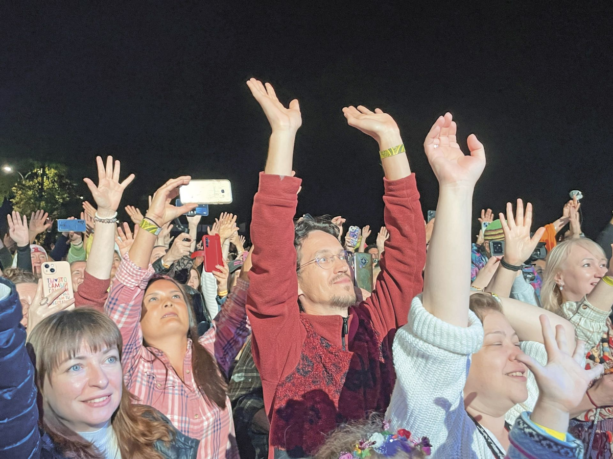 На сцене звучит народная музыка (русские песни сменяются балканскими, те – армянскими). Над сценой идёт дождь. Перед сценой зрители от мала до велика – кто под зонтами, кто в дождевиках – зажигают в хороводах под фольклорные ритмы с электронным звучанием.