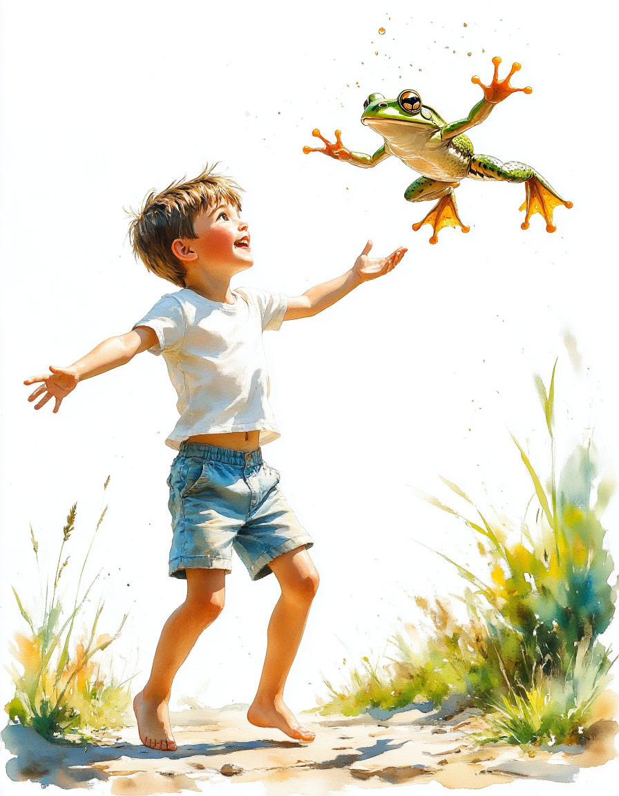 - Связь с природными силами. Мальчик, взаимодействующий с лягушкой, может символизировать связь человека с природными энергиями. В древних традициях лягушка считалась хранительницей земных сил и целительных вод.