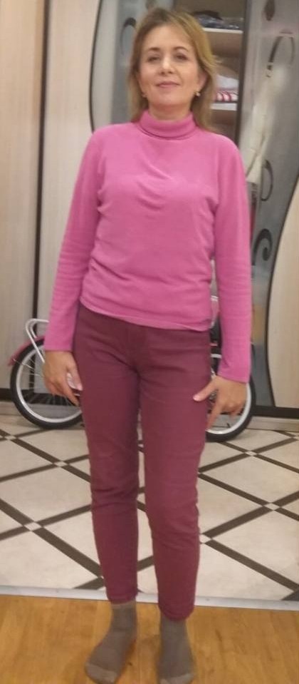 Теперь она сама легко подбирает комплекты и чувствует себя уверенно в любой ситуации. Ирина целеустремленная, отзывчивая, добрая, решительная и уверенная. Возраст 48 лет, рост 165 см. "Какие сложности при покупке вещей у вас бывают?" Сложно составлять комплекты. Обычно покупаю просто понравившуюся вещь. Часто в уме примеряю с чем буду носить, но в итоге так не ношу. Либо не ношу, либо ношу с чем-то другим. "Что бы вы пожелали будущей себе?" Оставаться всегда самой собой. "Какую цель вы хотите достичь не этом курсе?" Научиться подбирать себе комплекты самостоятельно, составлять комплекты, подбирая по цветам, фактурам, принтам. И составить свой многофункциональный гардероб, желательно на в
