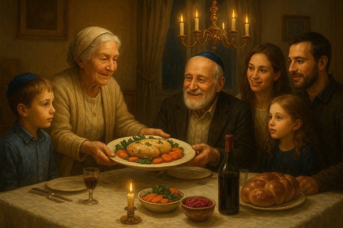 Если есть блюдо, без которого трудно представить еврейский шаббат или Песах, — это, конечно, гефилте фиш. Ароматная, нежная и пропитанная традицией, она словно соединяет поколения за одним столом. Гефилте фиш появилась в еврейских общинах Восточной Европы — в Польше, Литве, Украине. В старину рыба была доступным, но ценным продуктом, поэтому хозяйки старались использовать её с умом: измельчали, смешивали с хлебом и овощами, чтобы «размножить» количество порций. Кроме того, фаршированная рыба идеально подходила под субботние законы: в шаббат нельзя отделять кости от мяса (борер), а у гефилте фиш костей просто нет. Так кулинарное решение стало галахическим удобством! 🥕 Классический рецепт гефилте фиш Ингредиенты: • Щука — 500 г • Карп — 500 г • Судак или окунь — 300 г • Репчатый лук — 2 шт. • Морковь — 1–2 шт. • Яйца — 2 шт. • Маца или белый хлеб (размоченный) — 2 ломтика • Сахар — 1–2 ч. ложки • Соль, перец — по вкусу • Растительное масло — 1 ст. ложка Приготовление: 1️⃣ Очистите рыбу,