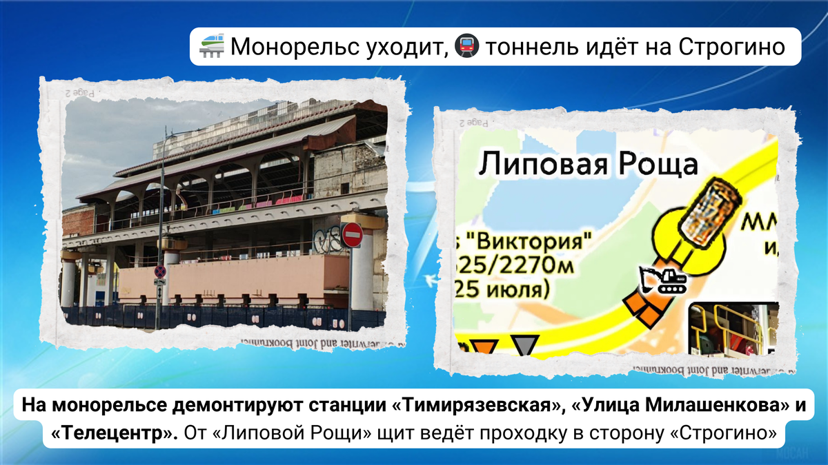 🚝➖3️⃣ Монорельс — минус три; 🚇🚀 Рублёво-Архангельская — проходка к «Строгино»