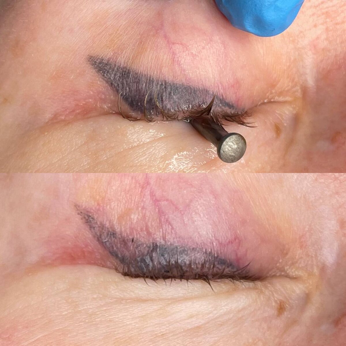 Самое лучшее, что мы можем делать для себя - это заботиться о своём будущем уже сегодня. Поэтому, кто-то удаляет некрасивые стрелки, а кто-то перекрывает, уходя от проблемы сегодня, но увеличивая её масштабы в будущем. Кто-то из вас может не знать, но стрелка - рано или поздно становится некрасивой. И ее перекрытие спасает до поры до времени 🤷🏻♀️ На фото результат одного удаления. Глаз защищён специальной шильдой