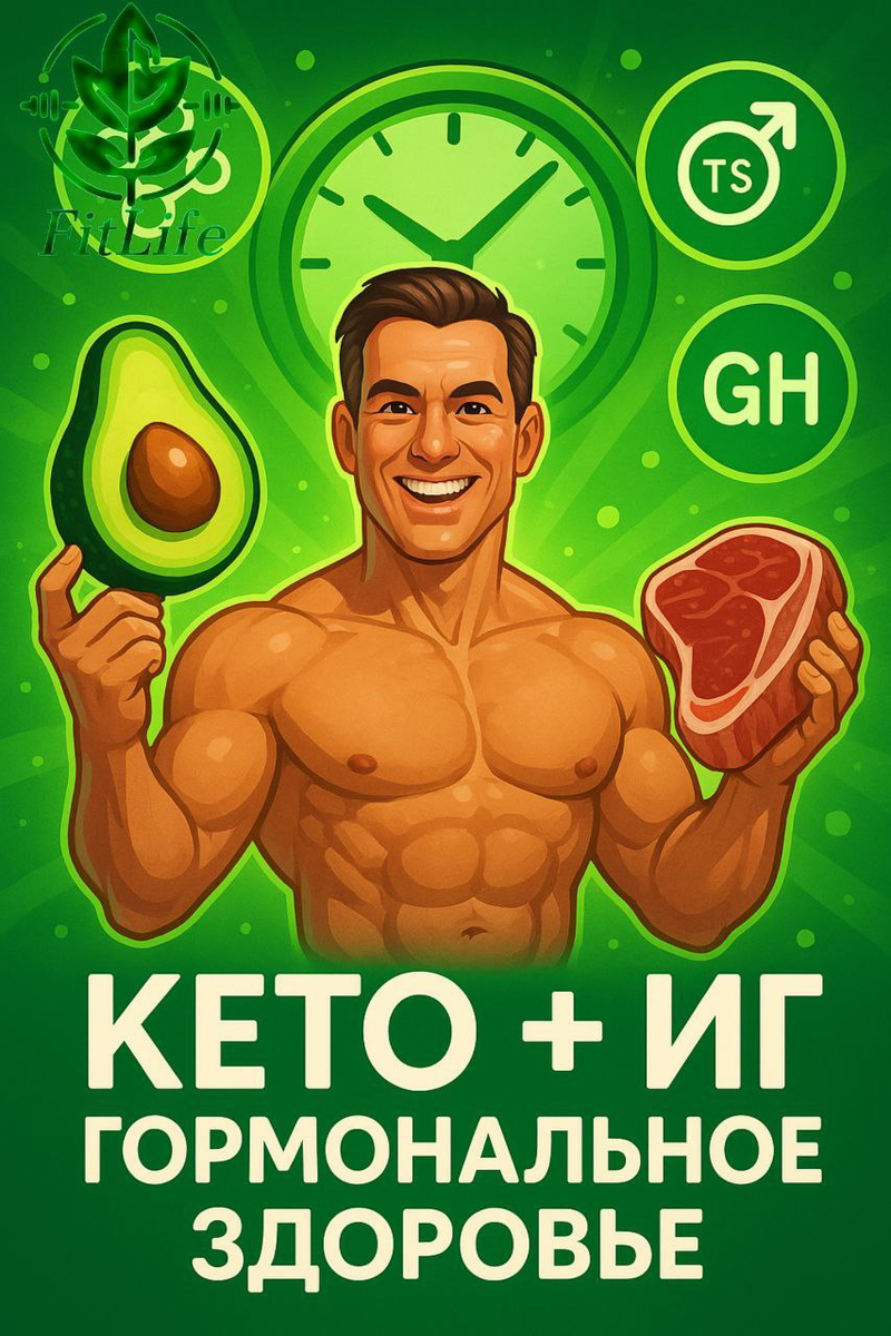 Можно ли замедлить? Да! С помощью кето и интервального голодания. После 30 лет уровень тестостерона у мужчин (и отчасти у женщин) начинает постепенно снижаться — примерно на 1–2% в год. 😴 Больше усталости 💪 Меньше мышц ⚖️ Легче набирается вес 😔 Снижается либидо и настроение Но это не приговор. Есть способ поддерживать гормональный баланс — через питание и режим. 🧬 Меньше выработки в яичках 🧠 Сбои в работе "гормональной оси" гипоталамус-гипофиз-яички 🧲 Повышается ГСПГ — белок, который "запирает" тестостерон 📉 Избыточный вес, стресс, малоподвижность, дефицит сна Кето — это много жиров, немного белка и почти никаких углеводов. Что происходит в организме: ✅ Уровень инсулина падает → больше свободного тестостерона 🔥 Снижается воспаление ⚖️ Уходит лишний вес 🧱 Поступают полезные жиры — "строительный материал" для гормонов 📌 Не про то, что есть, а про когда есть. Пример: режим 16/8 — 16 часов без еды, 8 часов — приём пищи. 🔽 Инсулин снова снижается 📈 Повышается гормон роста — он р