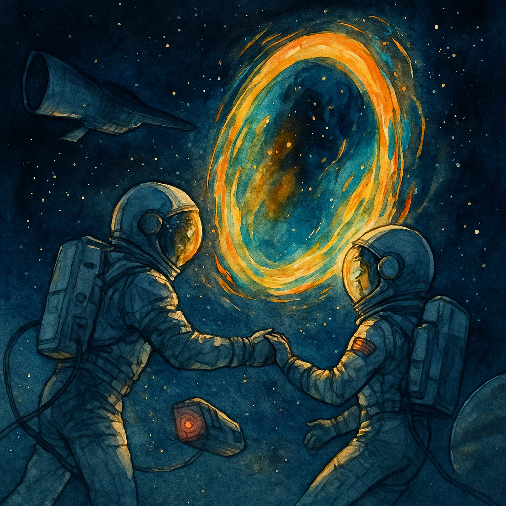 Он в открытом космосе, совершенно один. За спиной – установка для перемещения и маневрирования космонавта (УПМК). В глаза бьёт яркий свет от космических лучей. Он зажмуривается, опускает защитное стекло. Смотрит по сторонам: корабль уже очень далеко. Связь отсутствует. Неожиданно перед ним выплывает космонавт. Он видит её лицо, большие карие глаза. Даже на расстоянии видит, как она прекрасна. УПМК работает на сжатом воздухе, он медленно направляется к ней, притормаживает, протягивает руку. Их пальцы в перчатках переплетаются, взгляды пересекаются. Его серо-зеленые глаза и её карие встретились. Сердце стучит в груди, пульс подскочил. Пульсометр сигнализирует Генри о его нестабильном состоянии и потреблении большого количества кислорода. Для него это не имеет значения: он не может оторвать от неё взгляд.