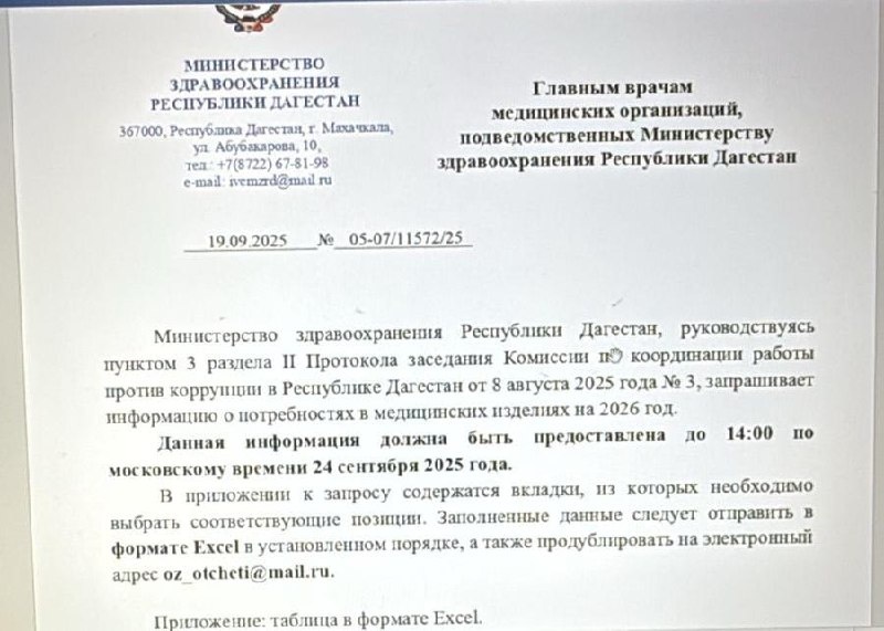 ©Прошу обратить внимание и провести проверку технических параметров в лотах, планируемых Министерством здравоохранения Дагестана в плане подготовки проведения закупок медицинских изделий, в том числе для операций ВМП (высокотехнологичная медицинская помощь), для нужд больниц республики на 2026 год. В рамках противодействия коррупции, в этом году Минздравом проводится комплексная централизация закупок для нужд больнице региона. Раньше каждая больница сама прописывала техническое задание с указанием технических параметров на необходимые больнице аппараты и медицинские изделия. Если проводить централизацию по-совести – то это правильная работа, а если искать возможность на этом заработать ещё больше – то это преступление. Приведу условный пример в пропорциях. Качественный американский или европейский стент стоит (условно) 20 тыс. руб., государством выделяется для его покупки 30 тыс. руб. Честная централизация закупок позволяет минимизировать проседающую в разные карманы (проверяющих с