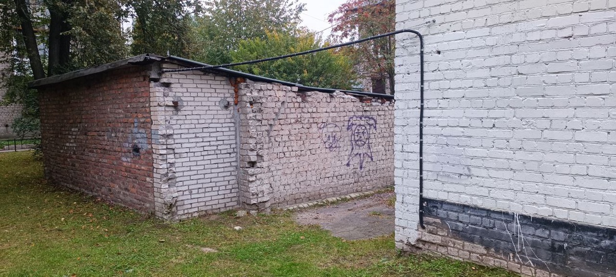 Справа типичная ТПшка, а слева — обычный кирпичный гараж.