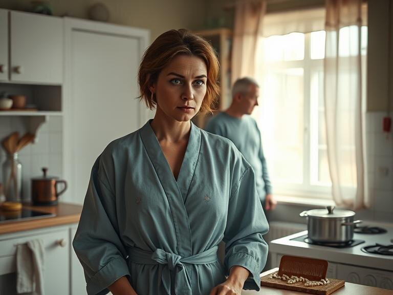 За дверью кухни стояла тишина. На плите бурлила кастрюля с макаронами, запах поджаренного лука вплетался в воздух, как будто сцена требовала декорации — мирной, домашней, но с трещиной.