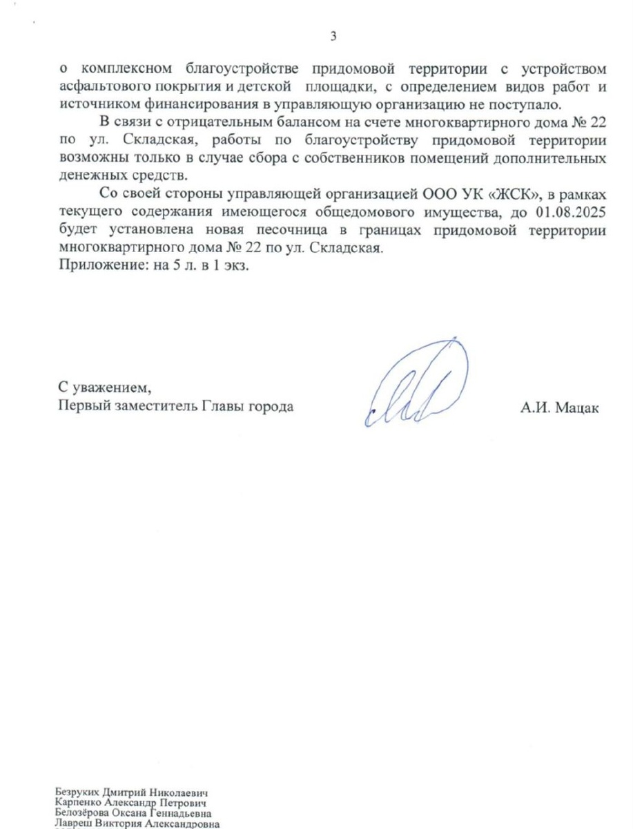 🤥 УК «ЖСК» обманула заместителя мэра А. Мацака и жителей многоквартирного дома Первый заместитель главы города Александр Мацак на просьбу жителей благоустроить дворовую территорию, ссылаясь на УК «ЖСК», официально ответил жителям: 💬 «Управляющей организацией ООО УК «ЖСК», в рамках текущего содержания имеющегося общедомового имущества, до 01.08.2025 будет установлена новая песочница в границах придомовой территории многоквартирного дома Nº 22 по ул. Складская» 🥱 С обещанной даты прошло полтора месяца, но новой песочницы во дворе так и не появилось… Бесконечные коррупционные скандалы и эта ситуация с невидимой песочницей окончательно подорвали доверие жителей дома к городской власти. 💪🏼 Мы решили взять ситуацию в свои руки. С моими соратниками по партии за свой счёт и своими силами установили новую песочницу во дворе дома. Надеюсь, наша песочница ЛДПР хоть немного поспособствует возврату доверия к власти и порадует ребятишек. ☝️ Уверен, что администрация должна быть более чутко