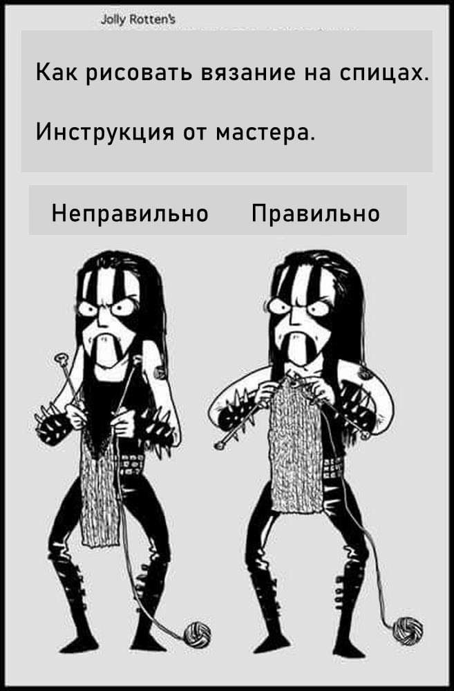 Вы видели иностранные комиксы, на которых иногда неправильно показали вязание на спицах. Инструкция от художника. Мой перевод. - Это как же так важно вязальщиц такими злыднями изобразить? Мы же сама доброта, мы холодными колющими предметами красоту создаём!