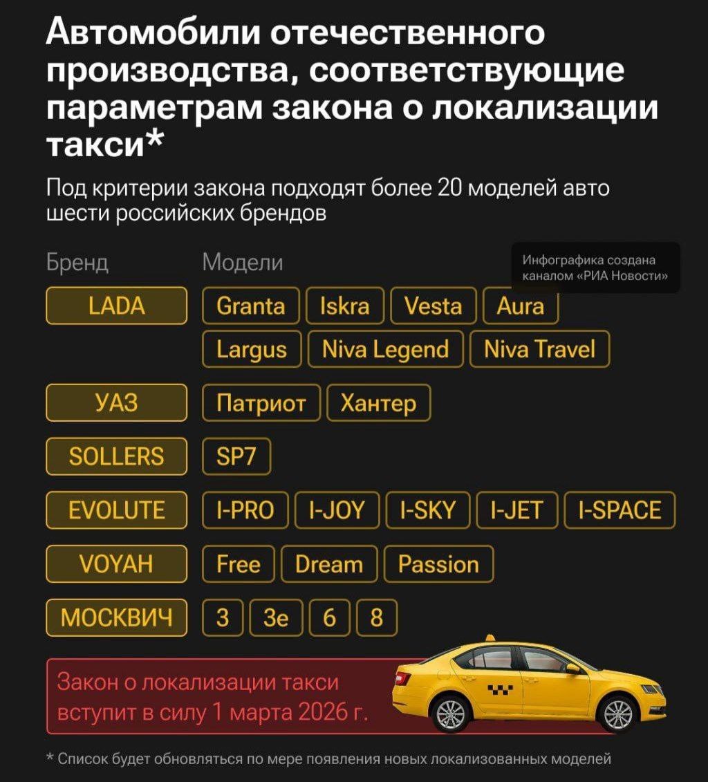 Минпромторг опубликовал первичный список автомобилей, которые можно будет внести в реестр автомобилей такси после 1 марта 2026 г.