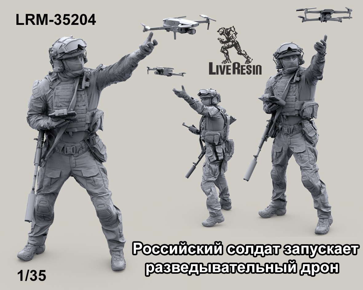 Live Resin представил новые фигурки в 1/35 масштабе. ================================ Live Resin,также, представили различные дроны в 1/35 масштабе. =============================== Golikov Project из Владикавказа выпустила из полиуретановой смолы башню для моделей Т-55 позднего типа с турелью для моделей в масштабе 1/72 от Trumpeter. В наборе даны два типа маски орудия на выбор: без чехла и в зачехлённом виде. Под поручни по периметру подготовлены отверстия. Рекомендуется изготовить поручни самостоятельно из проволоки диаметром 0,3 мм. ================================ SpAsov из Георгиевска Ставропольского края проектирует для выпуска на 3D-принтере в масштабе 1/35 модель паровоза серии Иосиф Сталин ИС-20 (тип 1-4-2). Показаны рендеры рамы. ================================ Московская Live Resin выпускает на 3D-принтере фигуру военнослужащего ВС РФ в масштабе 1/35: Военнослужащий ВС РФ (каталожный номер LRM-35074) =============================== "Союз