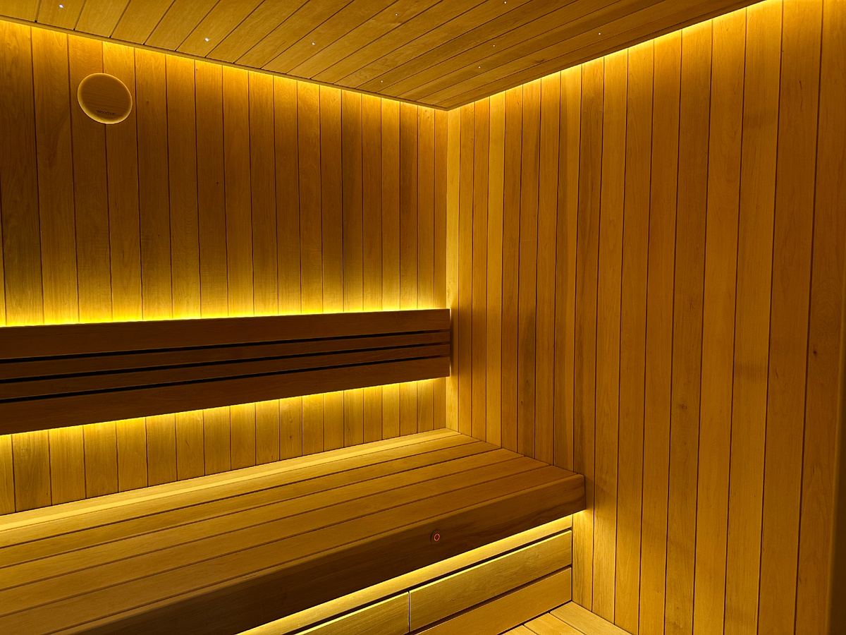 Иногда истинный комфорт рождается не из масштабов, а из продуманных деталей. Эта сауна, которую мы построили для нашего клиента в КП "Дольче Вита", - наглядный пример того, как лаконичный дизайн и современные технологии создают идеальное пространство для отдыха. Отделка выполнена из ольхи сорта "экстра". Светлые тона вагонки визуально увеличивают пространство, придавая интерьеру легкость и воздушность. Печной узел облицован талькохлоритом - камнем, который не только сохраняет тепло, но и придаёт интерьеру благородство, чувство природной силы. Его сдержанный серый оттенок идеально контрастирует с теплыми деревянными поверхностями. В этой сауне свет играет не менее важную роль, чем материалы. Мягкое светодиодное освещение по периметру потолка, полок и подспинников создают ощущение легкости, тепла и уюта. Завершающий штрих - система "Звёздное небо", превращающая потолок в панораму ночного неба. Это решение наполняет пространство ощущением покоя и умиротворения. Если за эстетику отвечает