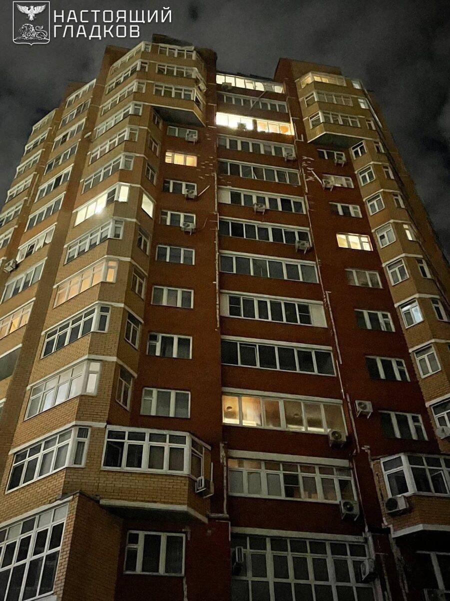 В результате падения обломков от сбитого БПЛА в многоквартирном доме выбиты окна в 15 квартирах. Кроме того, во дворе МКД осколками посечены 20 автомобилей.