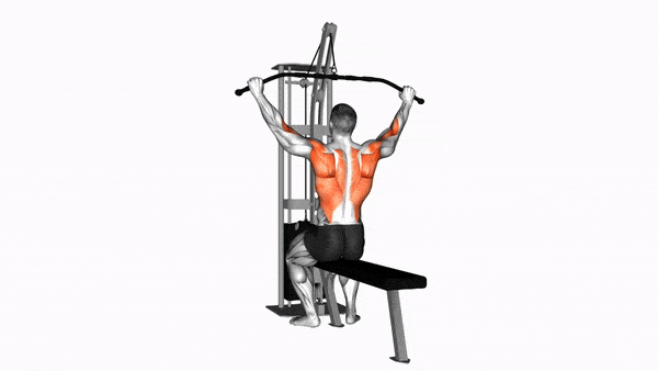 Важно: вес должен опускаться по направлению к груди, а не за голову. При тяге за голову большая часть нагрузки переносится с мускулатуры спины на плечи и позвоночник, вызывая перенапряжение суставов в нижней точке траектории.