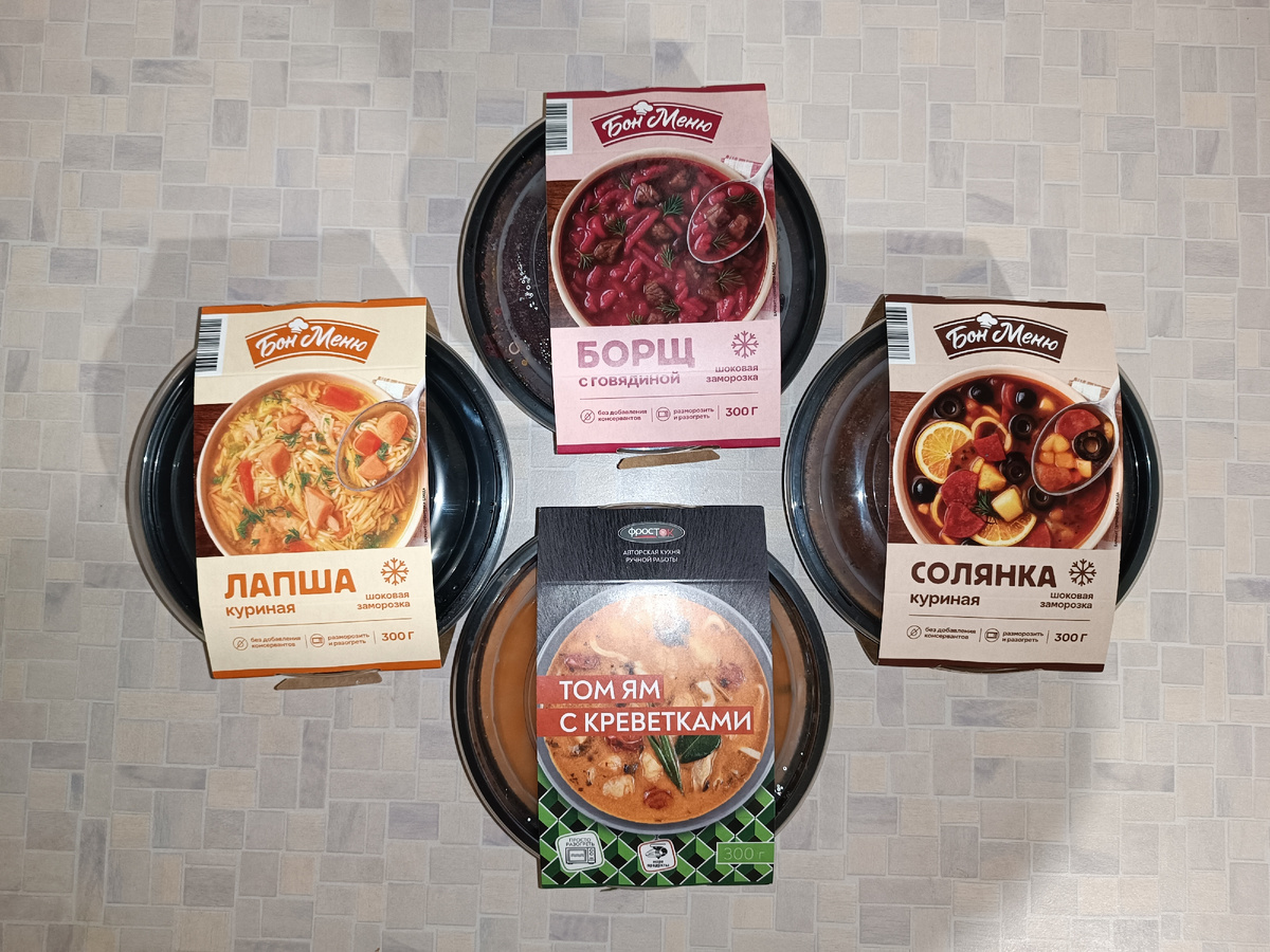 Супы от двух знакомых брендов купила - "Бон Меню" и "Фросток".