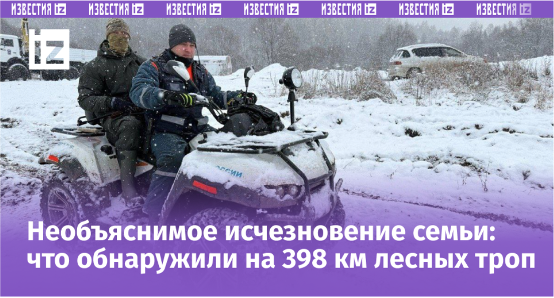 Поиски пропавшей семьи в лесу Красноярского края осложняются погодными условиями, но продолжаются. В регионе выпал снег, температура опустилась, бушует сильный ветер. В подобных условиях поднимать в воздух вертолеты опасно, а беспилотники — невозможно. Поэтому теперь спасатели и волонтеры ищут семью Усольцевых на квадроциклах и прочесывают окрестности пешком. С начала поисков уже проверено 278 кв км лесного массива и 398 км лесных троп и дорог, но обнаружить какие-либо следы супругов и их дочери не удалось, сообщается в Telegram-канале «112». Семья Усольцевых пропала больше недели назад. Сейчас экстренные службы опасаются, что они не переживут холода, который накрыл тайгу. На ваш взгляд, как и почему пропала семья Усольцевых? Удастся ли их найти? Подробно о ходе поиска читайте в материале "Известий": Фильм ужасов наяву: вся правда об исчезновении семьи Усольцевых в тайге