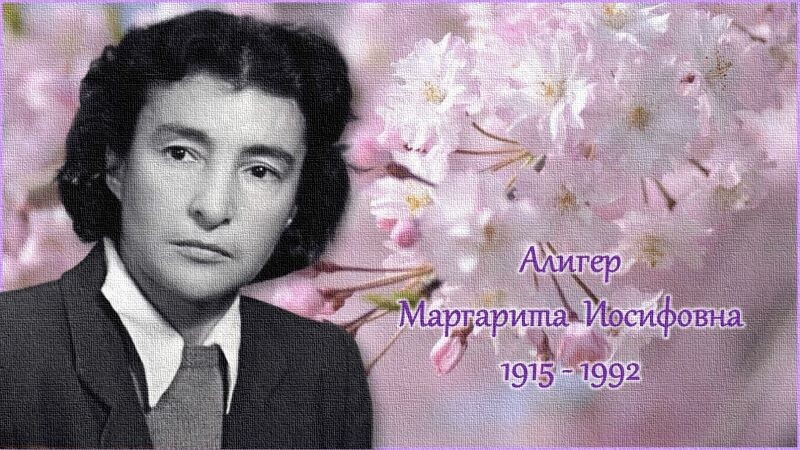 М. Алигер Маргарита Алигер (настоящая фамилия Зейлигер) родилась 7 октября 1915 года в Одессе. Отец, Иосиф Павлович, мечтал, чтобы Рита стала пианисткой, но оказалось, что у девочки нет способностей к музыке. Она дружила с мальчишками, хорошо плавала и любила стихи Некрасова, Пушкина, Багрицкого. В 8 лет начала писать стихи. После окончания семилетки Маргарита Алигер поступила в химический техникум, работала лаборантом на химическом заводе.