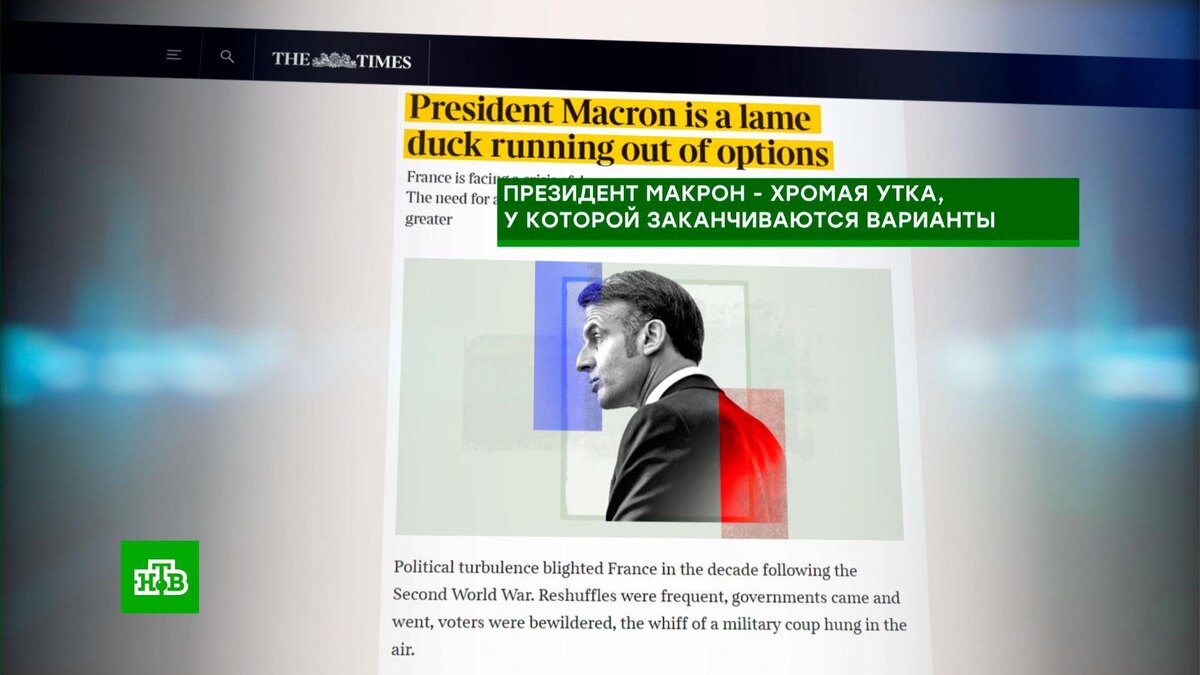После ухода Лекорню с поста премьера во Франции гадают, кто же станет новым премьером и что будет с самим Макроном. Газета The Times прямым текстом назвала его «хромой уткой», у которой заканчиваются варианты, а французская оппозиция требует отправить президента в отставку.