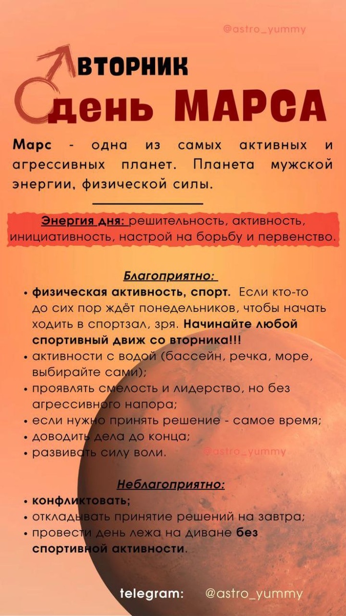 С предыдущей публикацией о том, что следует делать в Марсов день - вторник, можно ознакомиться