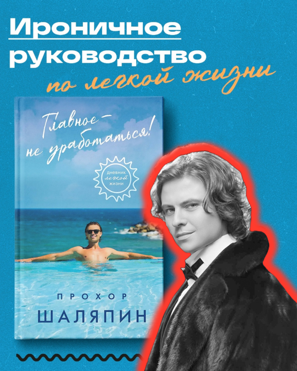Прохор Шаляпин, известный своей эпатажностью и философией гедонизма, осенью 2025 года выпустил свою дебютную книгу-манифест «Главное — не уработаться!». Это издание стало логическим завершением формирования его образа «гуру легкой жизни». Книга позиционируется как «дневник легкой жизни» и руководство по обретению внутренней свободы. 📖 О чем книга на самом деле Это не просто сборник биографических историй или мемуаров. Это интерактивный дневник с pages для самостоятельного заполнения, задачами и авторскими фотографиями, призванный помочь читателю пересмотреть свой подход к жизни. Ключевые идеи и философия: · Лень как добродетель: Шаляпин советует прекратить ругать себя за безделье, так как лень полезна для нашего организма. · Главное правило: «Люби себя — это взаимно» — центральный постулат, которым следует артист и который проповедует в книге. · Защита личных границ: Книга учит здоровому эгоизму, умению говорить «нет», ценить свой труд и не позволять себя использовать. · Культ отд
