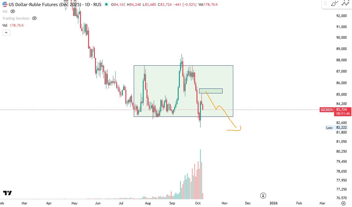 Мое мнение несколько разнится с этой точкой зрения. Вместе с тем, мы пришли к выводу, что рубль выглядит весьма крепко, и по факту есть два курса - оншорный и оффшорный, т е для расчетов зарубежом используются другие расчеты и товарно-денежные отношения, в которых экспортеры уже более года продают практически всю валютную выручку. Несмотря на то, что ЦБ сократил продажу валюты в сентябре - мы видим что яркой динамики ослабления рубля по-прежнему нет. Будет ли слабеть рубль? Я пока не вижу для этого причин, а поэтому, руководствуясь опытом и техническим анализом, предположу что укреплению рубля пока еще не настал конец) А что думаете вы?