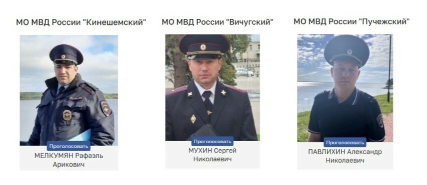 Названы финалисты регионального этапа конкурса «Народный участковый – 2025» В Ивановской области объявили финалистов Всероссийского конкурса «Народный участковый – 2025». Лидером по итогам первого этапа стал капитан полиции Рафаэль Мелкумян. За сотрудника Межмуниципального отдела МВД России «Кинешемский» отдано 973 голоса. На втором месте с 428 голосами участковый уполномоченный Межмуниципального отдела МВД России «Вичугский» майор полиции Сергей Мухин. Третью строчку с 374 голосами занял старший лейтенант полиции Александр Павлихин, участковый уполномоченный полиции МО МВД России «Пучежский». Голосование за полицейского, который представит Ивановскую область на федеральном уровне, продлится до 16 октября. Фото: УМВД России по Ивановской области