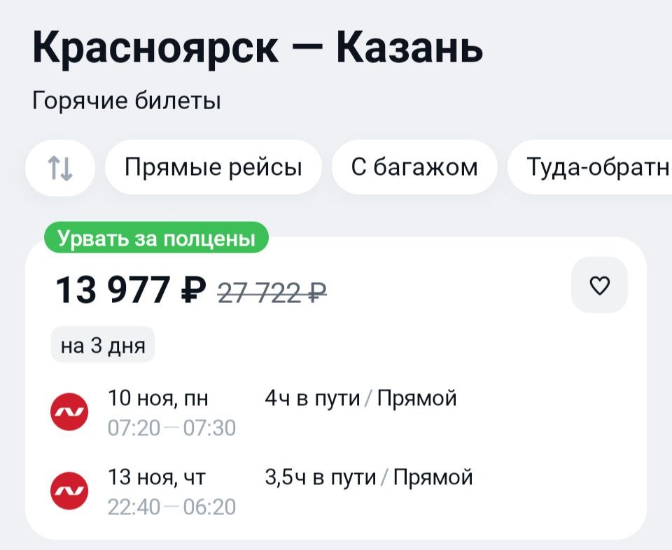 В Казань в ноябре-декабре. Такой ценник сейчас вполне себе нормально.