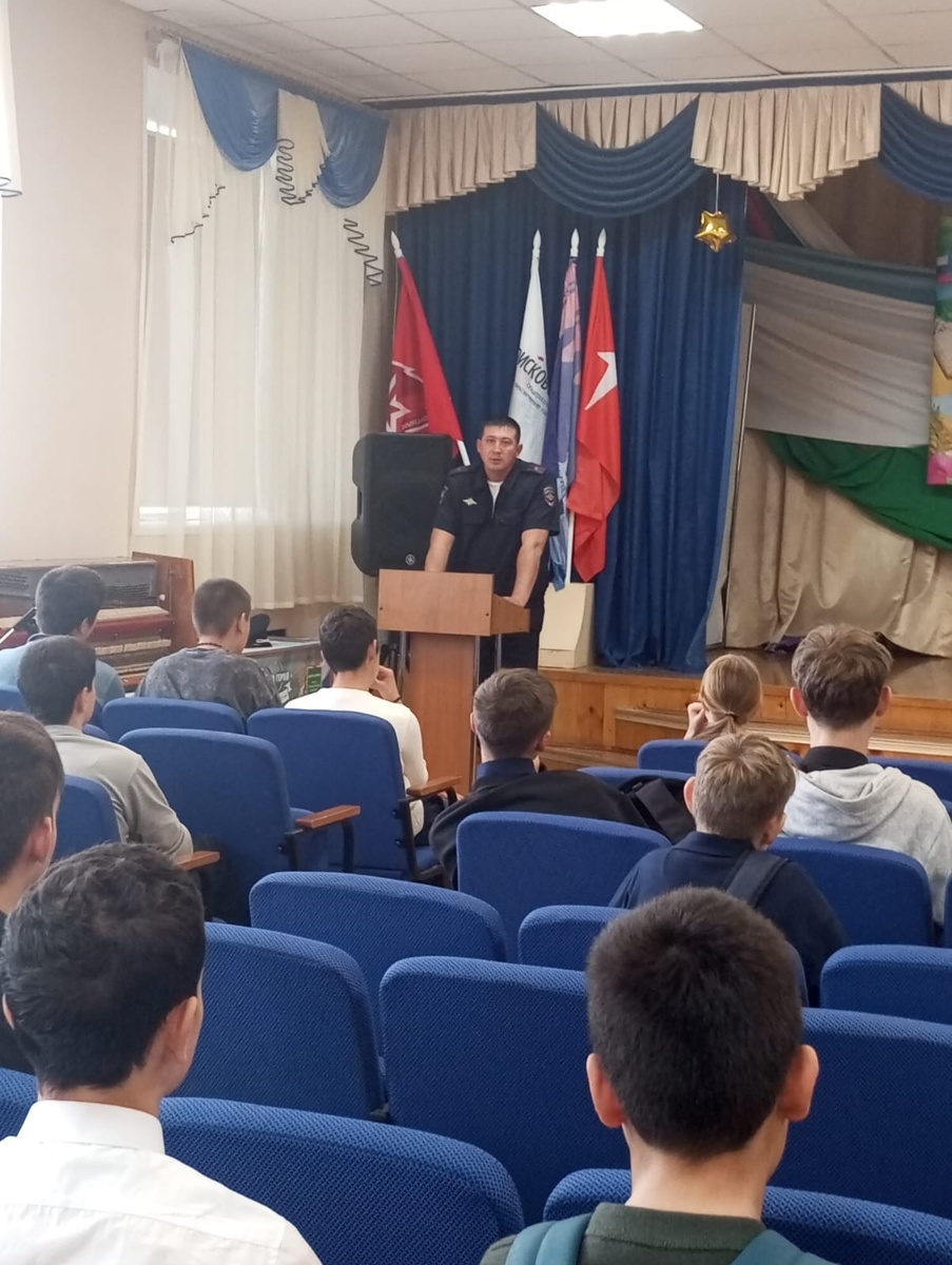 Выступив перед обучающимися средних и старших классов Инспектор полиции ознакомил школьников со статистикой ДТП с участием детей и обозначил основные причины дорожно-транспортных происшествий. К сожалению, многие дети, являясь пешеходами, сокращают свой путь и не пользуются специальными местами для перехода проезжей части, двигаются по дороге при наличии тротуара, или переходят дорогу на запрещающий сигнал светофора. Особое внимание наш гость обратил на тех, кто не имея водительских прав управляют транспортными средствами.