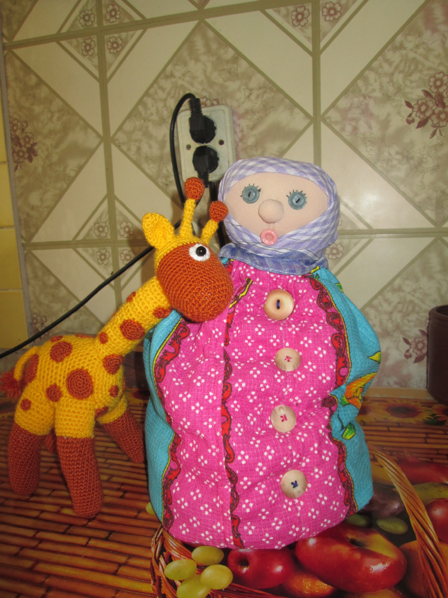 Любовь зла, полюбишь и... бабу на чайник. А я ему говорила, ну есть же красивые куколки: Алёнка, там, Вероника, Сонечка. Нет вот уперся, люблю Фросю, да и все тут. А я хоть сама ее и смастерила, даже не знала, что ее Фрося зовут. "А ты видела, какие у нее глаза?" - а у самого глаза, как у лунатика и улыбка какая-то блаженная, словно сникерс первый раз попробовал. Влюбился наш Гога в бабу на чайник. У меня нет слов... Может, вы ему чего-нибудь напишите, вдруг вас послушается?..
