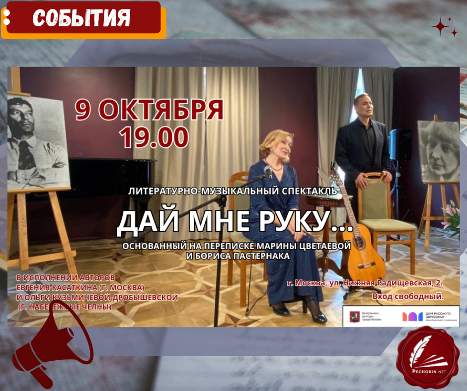 Приглашаем вас на литературно-музыкальный спектакль, посвященный Марине Ивановне Цветаевой, «Дай мне руку…», который состоится 9 октября в 19:00 часов.