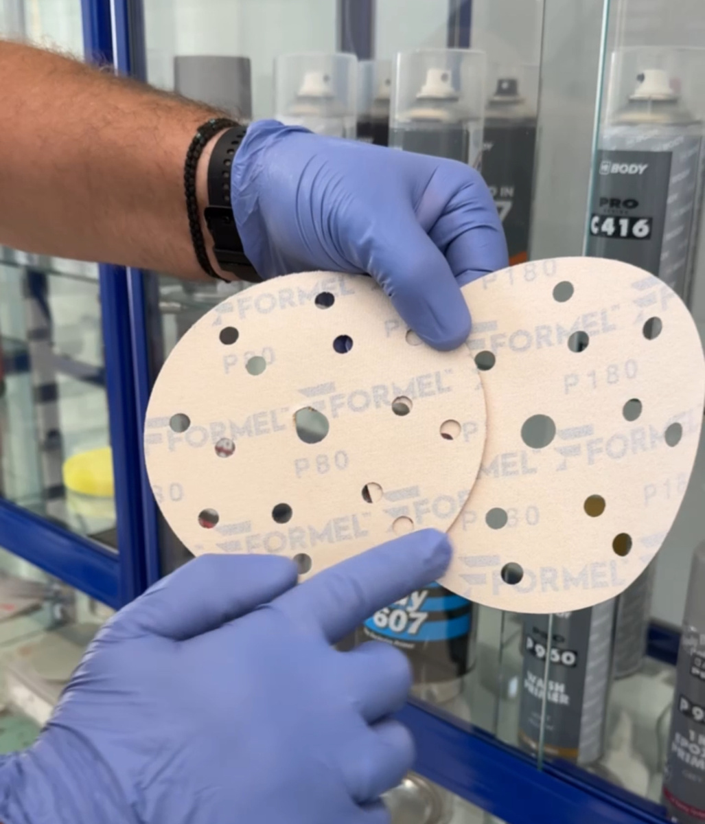 — Шлифуйте деталь перед шпатлеванием абразивами P80 → P180 (последовательно).