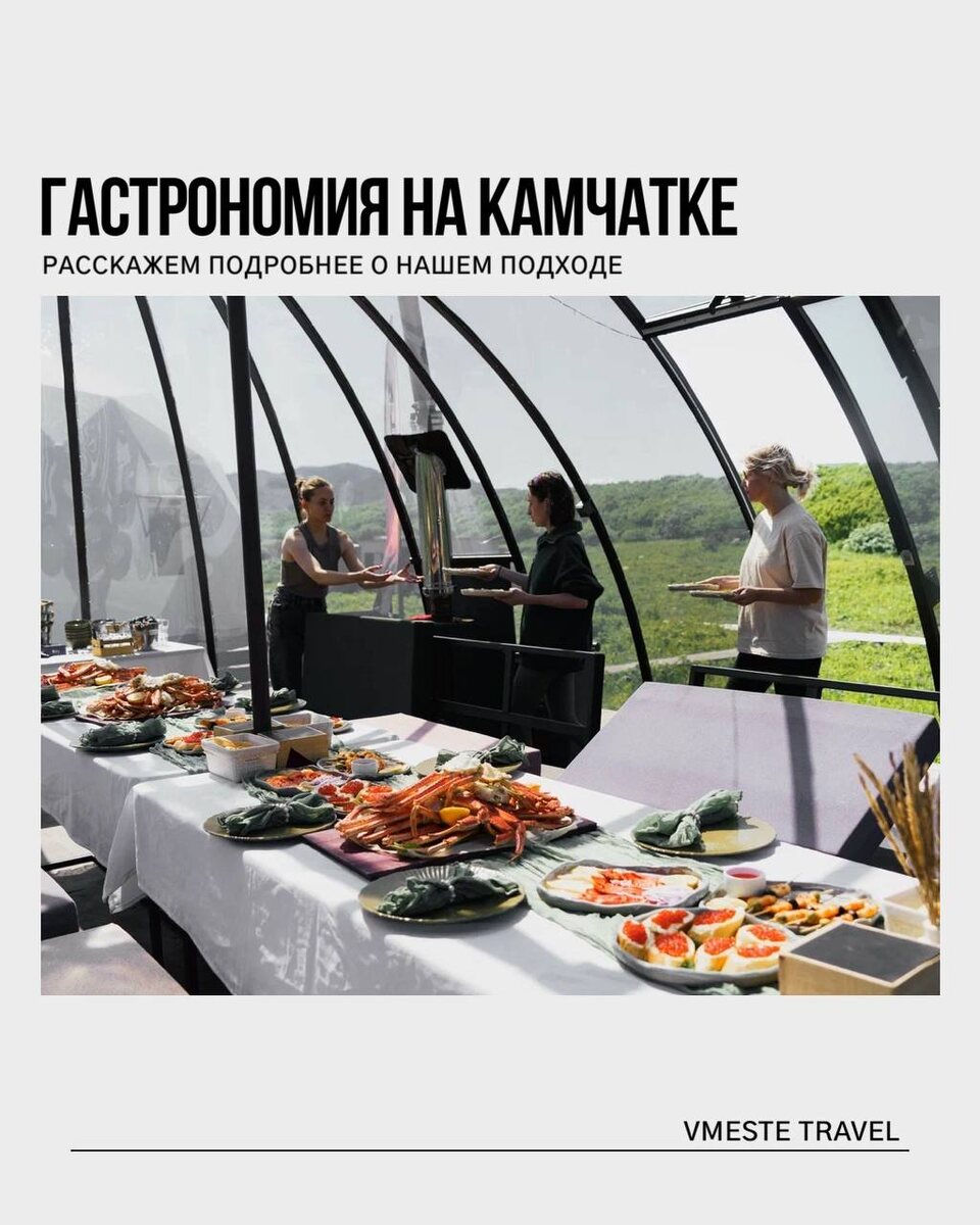 Гастроистория на Камчатке: сочетание дикой природы и изысканного вкуса 🦀 Для нас гастрономия — это не дополнение, а часть высокого уровня сервиса. Мы продумываем питание так же тщательно, как и весь маршрут: всегда свежие дальневосточные деликатесы — икра, крабы, красная рыба, гребешки и другие морепродукты. В каждом путешествии на Камчатку мы реализуем разные гастрономические форматы: ➖ Выездные бранчи с видом на вулканы ➖ Приглашение шеф-повара, устричного сомелье по вашему запросу ➖ Приготовление ухи из свежего улова и икры-пятиминутки во время рыбалки ➖ Крабовая вечеринка на Халактырском пляже и другие Мы уделяем внимание каждой детали, чтобы гастрономия была не просто питанием, а полноценной частью вашего впечатления! 💬 Узнать подробнее о туре на Камчатку ✔️ Подписаться на канал #Камчатка_vmeste #vmeste_бэкстейдж
