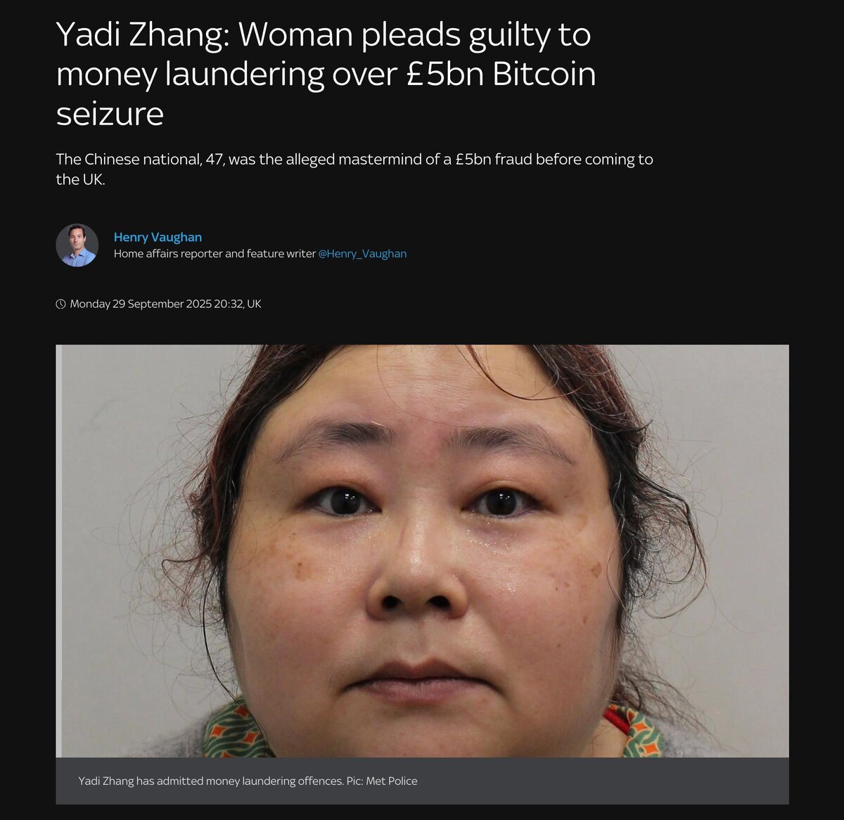 В октябре 2018 британская полиция провела обыск в её доме. В ноутбуках нашли доступ к 61 000 BTC — сегодня это $6.9 млрд. Расследование длилось 7 лет при участии китайских властей.