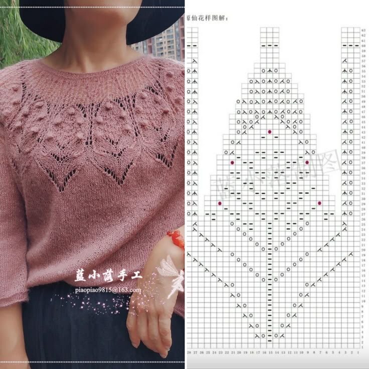 Если обхвата кокетки в нижней части мало, можно добавить ещё петель по кругу после вязания узора. И за счёт подрезов петли добавляются. Обычно добавляю 4-8 петель. После кокетки я вяжу азиатский росток. У меня, например, обхват груди небольшой, и я вяжу в среднем 3-4 сантиметра ростка.