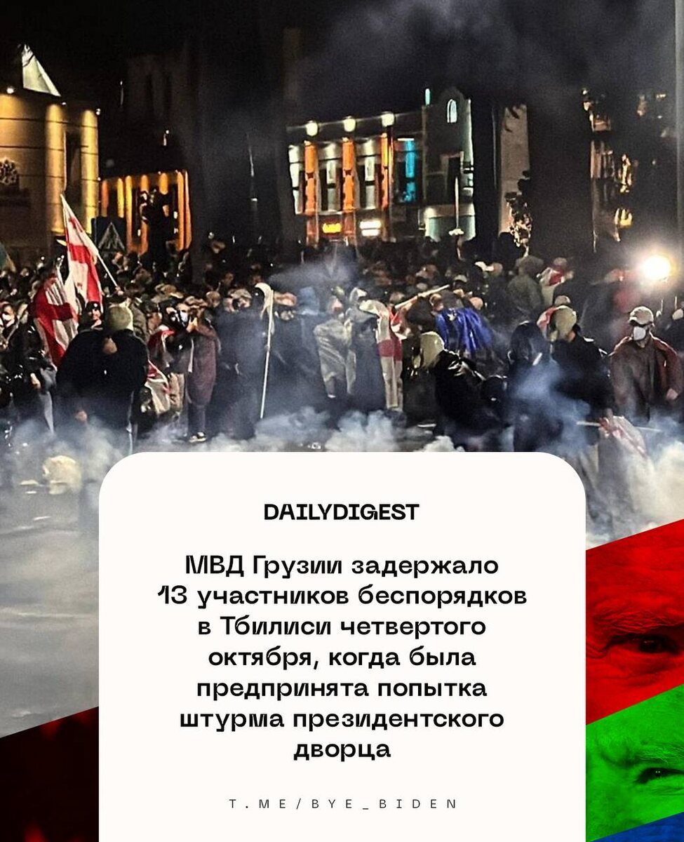 ☑️ Главные новости на утро 7 октября: 🔹 МВД Грузии задержало 13 участников беспорядков в Тбилиси четвертого октября, когда была предпринята попытка штурма президентского дворца. 🔹 Словакия предоставит Украине первый пакет помощи при Фицо. 🔹 Минюст США втайне составил юридическое заключение, которое оправдывает нанесение ударов по наркокартелям, сообщает CNN. 🔹 Трамп распорядился прекратить все усилия по дипломатическому урегулированию отношений с Венесуэлой, пишет The New York Times. 🔹 Все страны ЕС, включая Венгрию, согласовали ограничения на поездки дипломатов из РФ внутри сообщества, пишет Financial Times. 👍 БайБайден. Подписаться